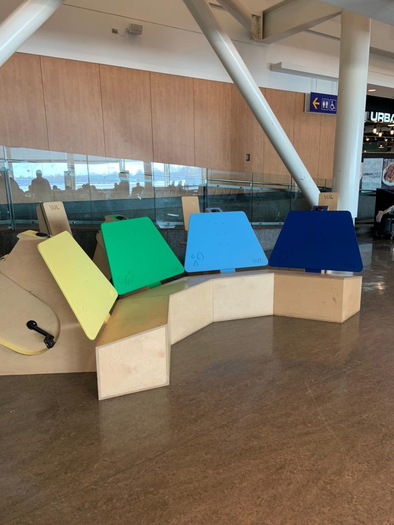 Airports have to be one of the most chaotic places in the world. Excited adults running late for their planes, kids jumping around and last-minute shopping. It gets exhausting just thinking about it. We designed re_connect with one purpose in mind. Give its users a much-needed break. Easy to set up, the bikes are perfect for conference centres, hotels, transit stations, malls, and many more locations. Each bike has cellphone charging ports and makes a unique sound. When the four bikes are used simultaneously, we can hear the sound of a bushfire deep inside the forest by a creek.