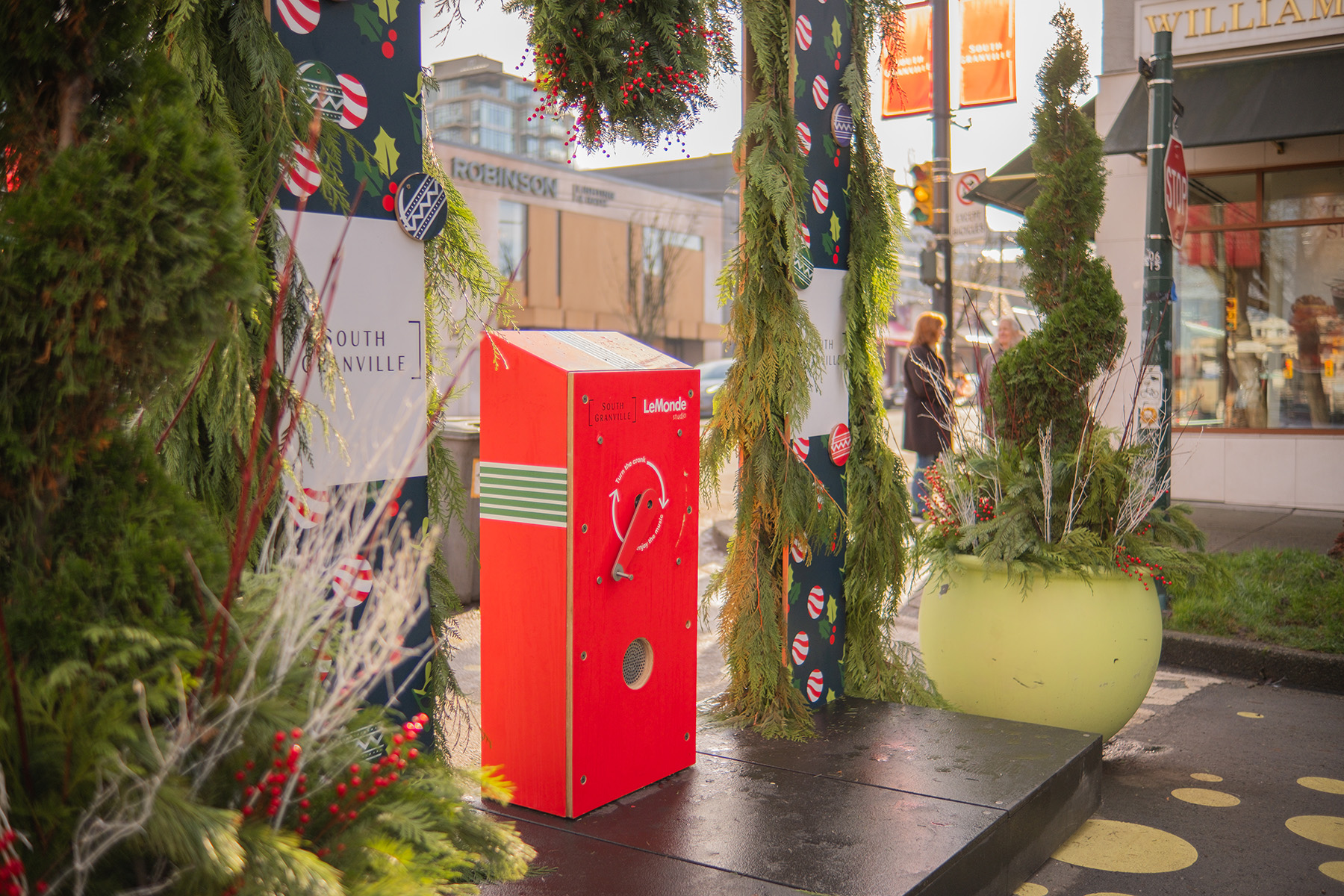 LeMonde Studio was tasked with transforming South Granville into a winter paradise. For this occasion, our team turned the square into Santa Claus’ backyard, featuring a giant custom arch, an interactive nutcracker, a human-powered Christmas karaoke machine, and a musical tree. This festive experience became a must-see for the community, delighting visitors for two months leading up to the winter holidays.